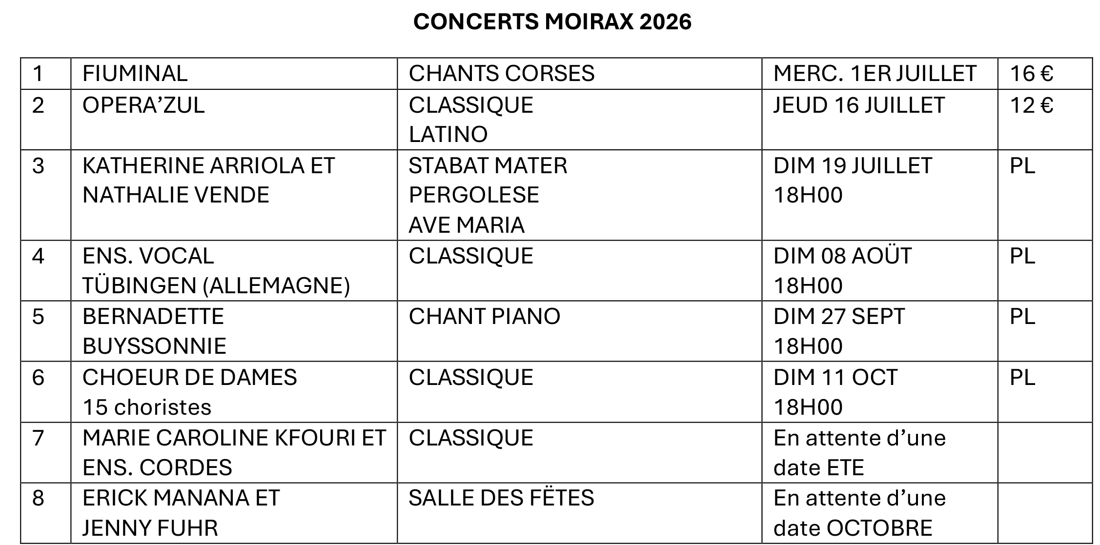 • Exposition et vente de l'association Moirax Céramique dans la salle des moines, dates à préciser.